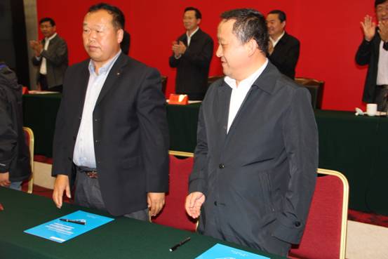 內(nèi)蒙古米真羊絨紡織有限責(zé)任公司與柴達木羊絨有限公司簽署協(xié)議現(xiàn)場