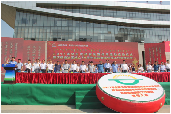 6月30日上午,2017年內(nèi)蒙古食品安全宣傳周活動(dòng)啟動(dòng)儀式暨自治區(qū)成立70周年慶?;顒?dòng)食品安全保障工作動(dòng)員誓師大會(huì)在呼和浩特國(guó)際會(huì)展中心舉行。本屆食品安全宣傳周以“尚德守法 共治共享 食品安全”為主題,通過(guò)深入宣傳《中華人民共和國(guó)食品安全法》及相關(guān)配套法律法規(guī),普及食品安全知識(shí),營(yíng)造良好的社會(huì)輿論氛圍,推動(dòng)食品安全工作共治與共享。
