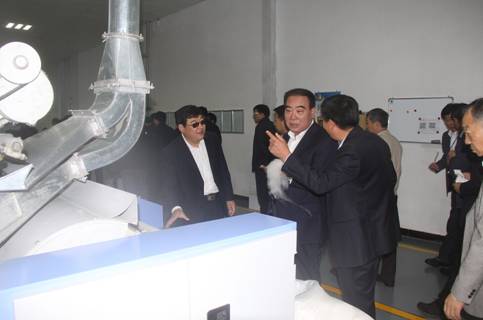 自治區(qū)農(nóng)牧業(yè)廳廳長郭健一行參觀協(xié)會常務理事單位--赤峰東榮羊絨制品有限公司