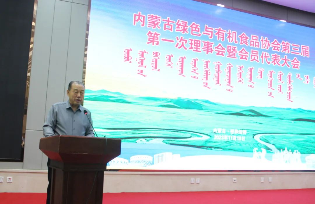 2023年11月18日上午,內(nèi)蒙古綠色與有機(jī)食品協(xié)會第三屆第一次理事會暨會員代表大會及2023第十一屆“名優(yōu)特”發(fā)布會在呼和浩特市召開,內(nèi)蒙古自治區(qū)農(nóng)牧廳市場與對外合作處副處長鄔冰泉、自治區(qū)農(nóng)畜產(chǎn)品質(zhì)量安全監(jiān)督管理中心副主任云巖春,自治區(qū)民政廳社管局黨建指導(dǎo)員張潤山、自治區(qū)農(nóng)牧業(yè)技術(shù)推廣中心鄉(xiāng)村產(chǎn)業(yè)推進(jìn)處處長趙于東、內(nèi)蒙古農(nóng)牧業(yè)產(chǎn)業(yè)化龍頭企業(yè)協(xié)會執(zhí)行秘書長呼群、內(nèi)蒙古綠色與有機(jī)食品協(xié)會會長王尚義,全體會員單位及新聞媒體出席會議,會議由協(xié)會執(zhí)行會長林永亮主持。