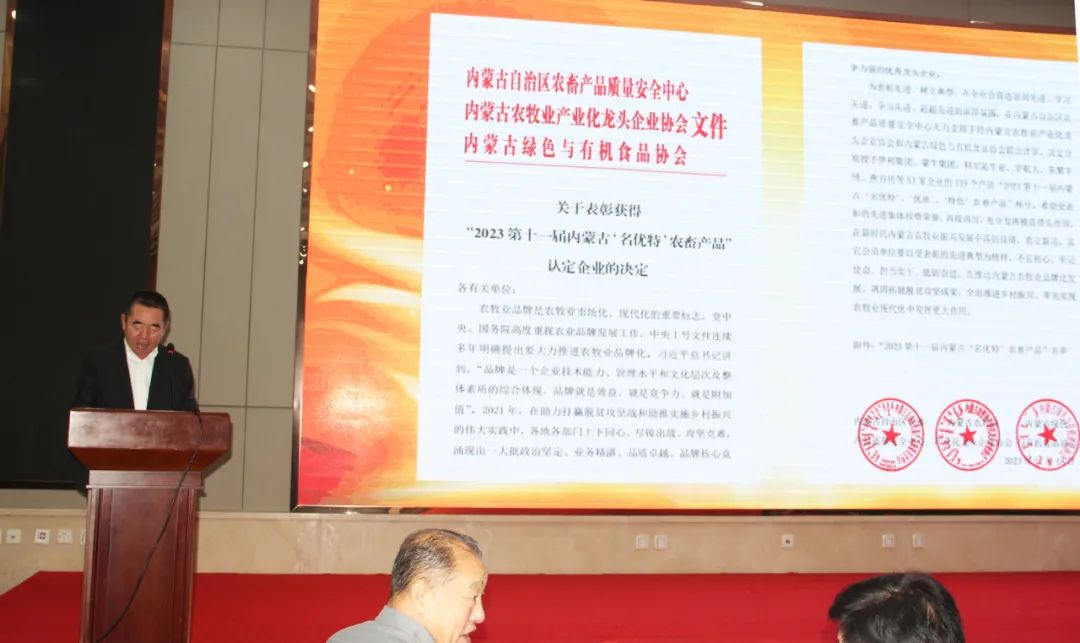 內(nèi)蒙古農(nóng)牧業(yè)產(chǎn)業(yè)化龍頭企業(yè)協(xié)會執(zhí)行秘書長呼群宣讀表彰決定
