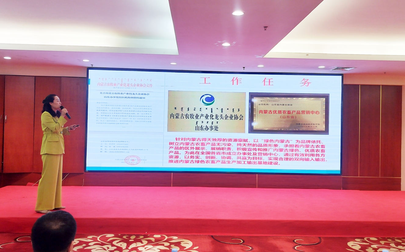 農牧廳副廳長海山首先代表自治區(qū)農牧廳和郭占江廳長,對內蒙古農牧業(yè)產(chǎn)業(yè)化龍頭企業(yè)協(xié)會第五屆理事會換屆工作順利完成表示祝賀!在致辭中講到,協(xié)會作為政企橋梁,需從三方面發(fā)力推動行業(yè)高質量發(fā)展:一是強化政策落地,依托自治區(qū)培育農副食品加工業(yè)、新版"奶9條"等政策紅利,引導龍頭企業(yè)帶動產(chǎn)業(yè)鏈協(xié)同發(fā)展,通過資源共享、標準共建實現(xiàn)延鏈強鏈。二是深化紓困服務,針對農畜產(chǎn)品價格低迷現(xiàn)狀,配合"助企行動"政策,暢通企業(yè)訴求反饋渠道,重點協(xié)助拓展市場,依托區(qū)外共享前置倉等資源推動優(yōu)質產(chǎn)品走向全國。三是前瞻產(chǎn)業(yè)研究,圍繞產(chǎn)業(yè)鏈建設、農企利益聯(lián)結等重大課題開展調研,為政府制定行業(yè)規(guī)劃提供智庫支持。當前自治區(qū)全力沖刺進中游目標,協(xié)會應把握政策窗口期,助力企業(yè)向產(chǎn)業(yè)鏈高端延伸,與農牧民形成共贏機制,共同推進農牧業(yè)這一朝陽產(chǎn)業(yè)提質增效,共同推動農牧業(yè)實現(xiàn)高質量發(fā)展。