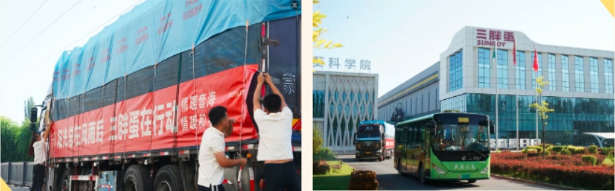 從區(qū)域品牌到全國領先,一路成為農(nóng)業(yè)產(chǎn)業(yè)化國家重點龍頭企業(yè),三胖蛋的成長路上,始終離不開家鄉(xiāng)的支持和關懷。帶著向日葵“一生向陽”的韌勁,挺身而出,用愛心物資搭起溫暖的橋。