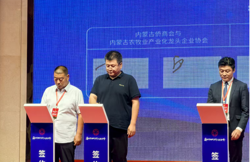 儀式現(xiàn)場(chǎng)還舉行了內(nèi)蒙古僑聯(lián)海外委員聘書頒發(fā)儀式和簽約儀式,內(nèi)蒙古農(nóng)牧業(yè)產(chǎn)業(yè)化龍頭企業(yè)協(xié)會(huì)副會(huì)長(zhǎng)單位赤峰東榮羊絨制品有限公司代表協(xié)會(huì)進(jìn)行簽約。