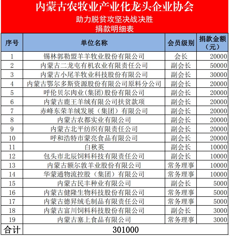 2020年,是全面建成小康社會目標(biāo)實現(xiàn)之年,是全面打贏脫貧攻堅戰(zhàn)收官之年,更是產(chǎn)業(yè)扶貧工作至關(guān)重要的一年,抓好此項工作責(zé)任重大、意義重大。受新冠肺炎疫情的影響,產(chǎn)業(yè)扶貧工作也必將會遇到新的挑戰(zhàn),時間緊、任務(wù)重,內(nèi)蒙古農(nóng)牧業(yè)產(chǎn)業(yè)化龍頭企業(yè)協(xié)會在內(nèi)蒙古自治區(qū)農(nóng)牧廳的指導(dǎo)下,克服困難、精心策劃、認(rèn)真研究、取長補短,持續(xù)抓好今年的幫扶工作,確保成效。