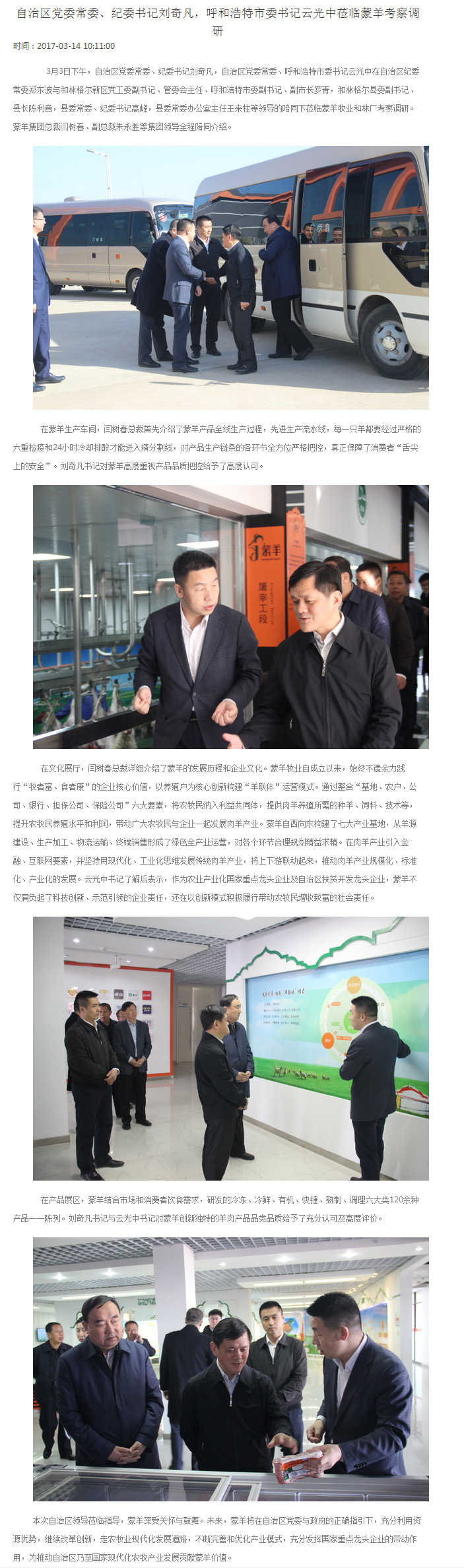 自治區(qū)黨委常委、紀委書記劉奇凡,呼和浩特市委書記云光中蒞臨蒙羊考察調(diào)研