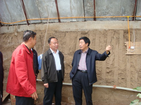 呼市政府高副市長(zhǎng)(右一)、畢克齊鎮(zhèn)黨委(中)姜書(shū)記在基地越冬暖棚內(nèi)