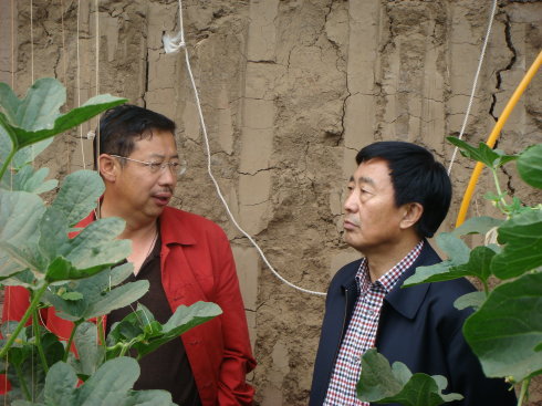 高副市長(zhǎng)和基地負(fù)責(zé)人在越冬暖棚內(nèi)