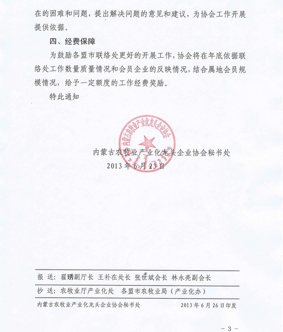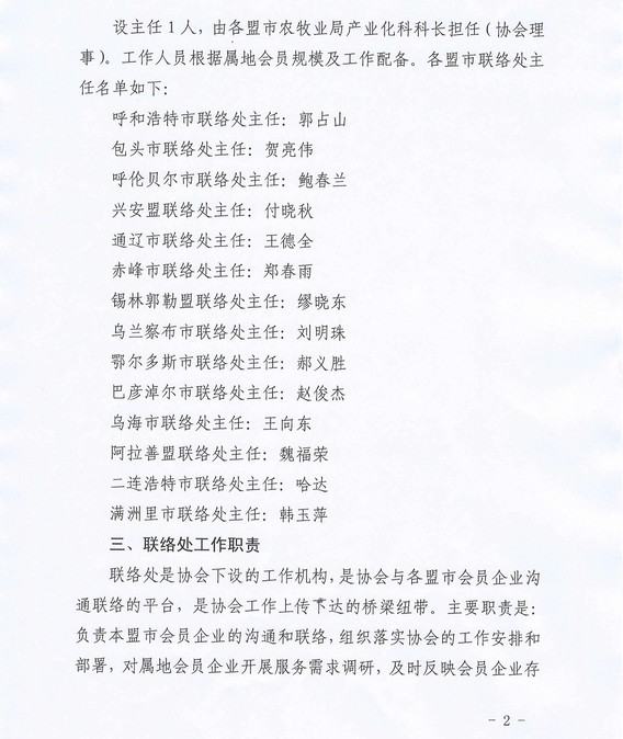 關(guān)于設(shè)立農(nóng)牧業(yè)產(chǎn)業(yè)化龍頭企業(yè)協(xié)會盟市聯(lián)絡(luò)處的通知