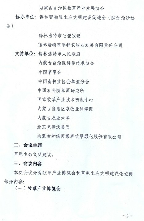 關(guān)于召開中國內(nèi)蒙古首屆(錫林郭勒)牧草業(yè)博覽會的通知