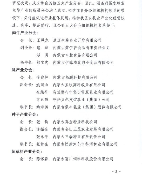 關于成立內(nèi)蒙古農(nóng)牧業(yè)產(chǎn)業(yè)化龍頭企業(yè)協(xié)會各大產(chǎn)業(yè)分會的通知