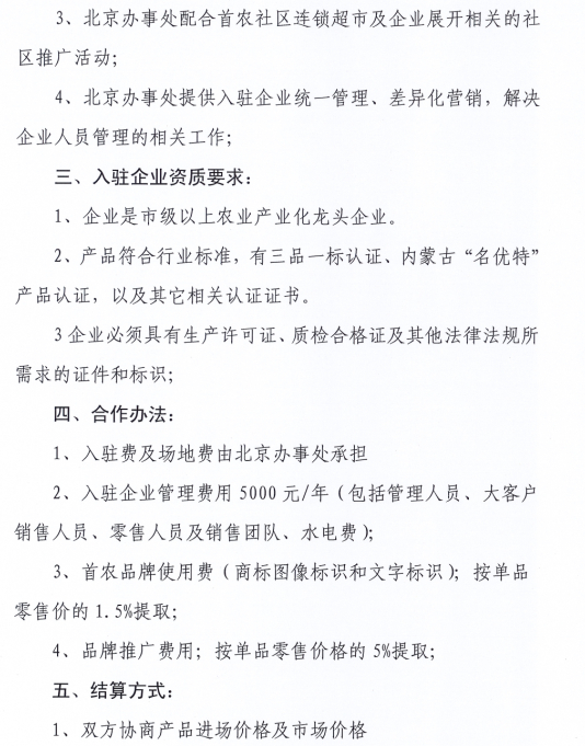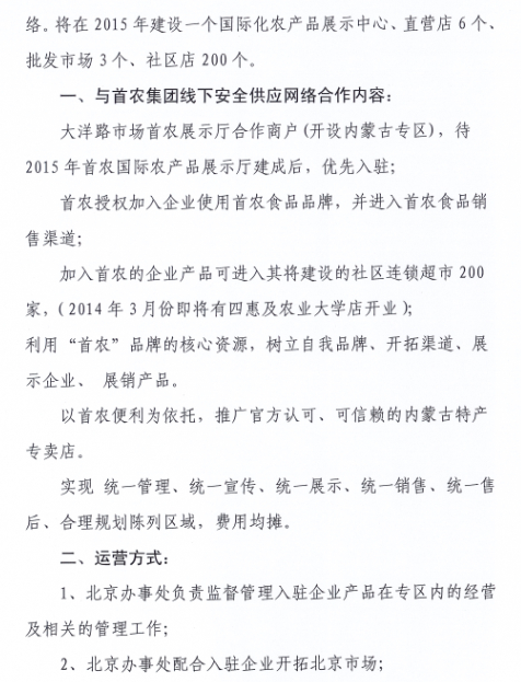 2014年內蒙古農牧業(yè)產業(yè)化龍頭企業(yè)協會北京辦事處進駐首農集團合作細則