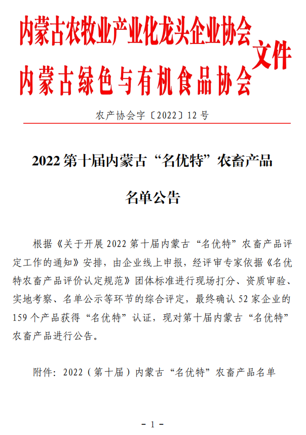 2022第十屆內(nèi)蒙古“名優(yōu)特”農(nóng)畜產(chǎn)品名單公告