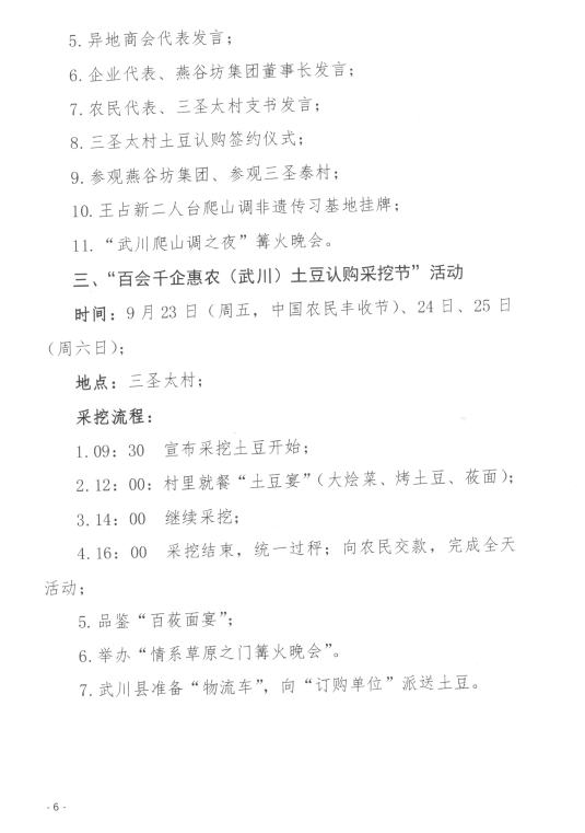 關(guān)于舉辦“百會千企惠農(nóng)(武川)土豆認(rèn)購采挖節(jié)”活動的通知