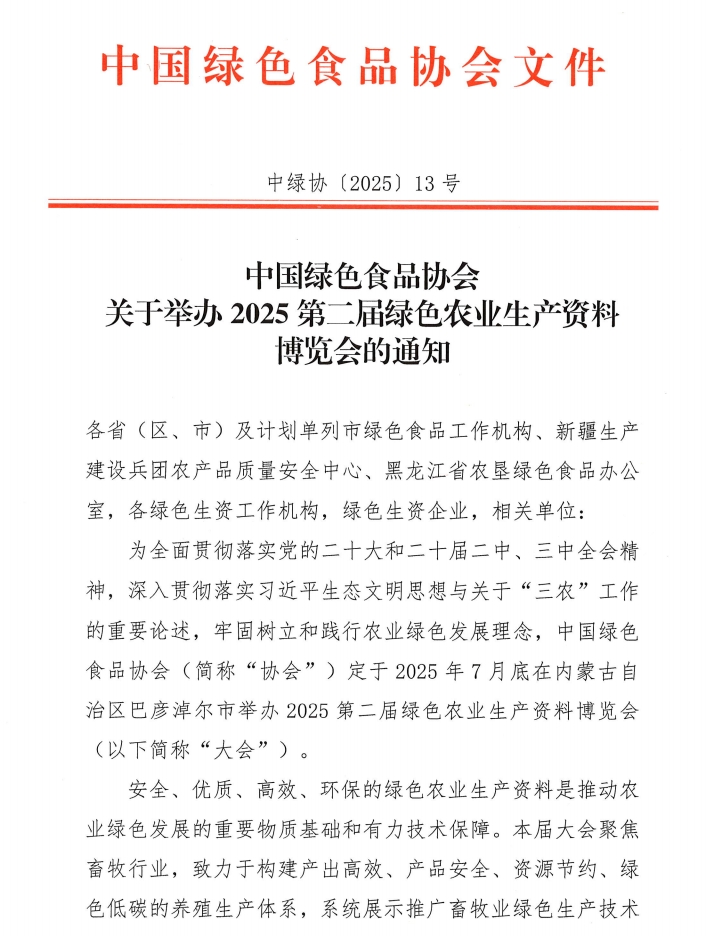 中國綠色食品協(xié)會關于舉辦2025第二屆綠色農業(yè)生產資料博覽會的通知