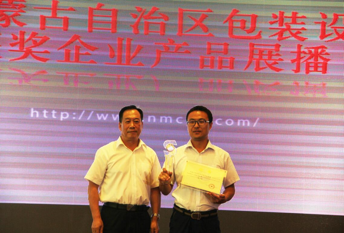 自治區(qū)農(nóng)牧業(yè)廳總農(nóng)藝師王雨鋒為包裝設(shè)計(jì)競(jìng)賽特等獎(jiǎng)獲獎(jiǎng)單位、內(nèi)蒙古田豐農(nóng)牧有限責(zé)任公司頒發(fā)獎(jiǎng)杯和證書(shū)