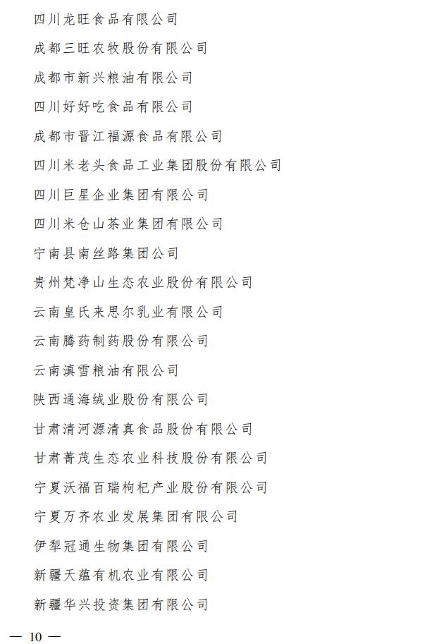 標題:農業(yè)農村部 國家發(fā)展改革委 財政部 商務部 中國人民銀行 國家稅務總局 中國證券監(jiān)督管理委員會 中華全國供銷合作總社關于遞補148家企業(yè)為農業(yè)產業(yè)化國家重點龍頭企業(yè)的通知