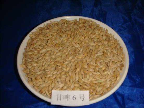 甘啤6號大麥屬二棱皮大麥,春性,生育期102天,中熟。幼苗半匍匐,莖稈彈性好,均勻株高80厘米。葉片開張角度大,冠層透光好,抽穗時(shí)株型松緊中等,穗全抽出,閉穎授粉,穗長方形。灌漿后期穗軸略有彎曲,穗層整潔,均勻穗長8.0厘米,穗莖節(jié)26.5厘米。疏穗型,單株有效分蘗2.5個(gè),長芒,黃色鋸齒。穗粒數(shù)23粒左右,千粒重4550克,蛋白質(zhì)含量8.710.5%,選粒率(2.5毫米)8593.0%。粒色淡黃,種皮薄,粒徑大,皺紋細(xì)膩,籽粒卵形,粉質(zhì);抗倒伏,抗干熱風(fēng),抗條紋病和其它大麥病害。